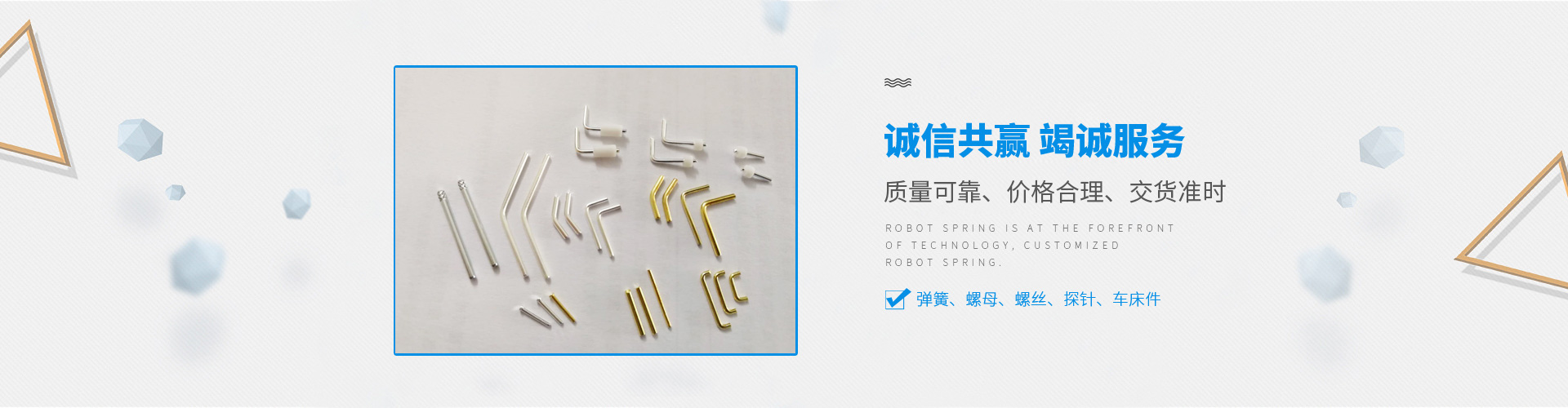 深圳裕聯(lián)興五金制品有限公司主要經(jīng)營生產(chǎn):彈簧、螺母、螺絲、探針、車床件等產(chǎn)品,我們擁有十幾年生產(chǎn)經(jīng)驗,公司致力于做一家:“一諾千金、誠信立業(yè)、胸懷廣闊、追求卓越”有社會責任感的企業(yè)。